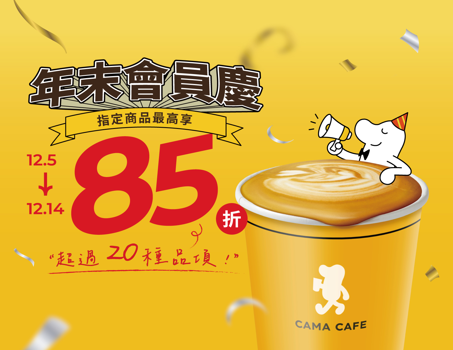 新鮮現烘連鎖咖啡品牌 CAMA CAFE 一年一度的年末會員慶於12月5日正式登場!為回饋全台喜愛 CAMA CAFE 的忠實咖啡迷,活動期間透過 CAMA CAFE APP「寄杯領取」功能購買指定咖啡品項,無論是日常必喝的招牌飲品,或家中常備的精品咖啡豆,都有買越多送越多的絕佳優惠,最低85折即可入手,越囤越划算!