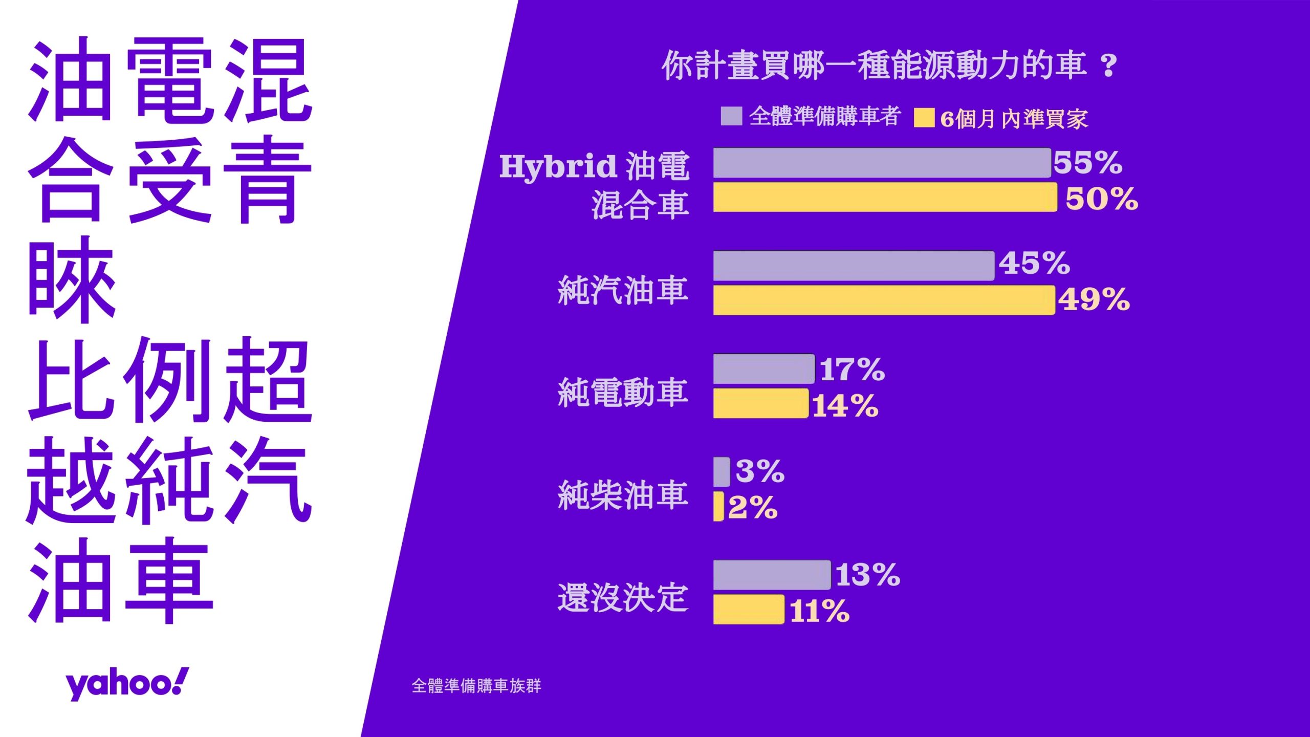 隨著能源轉型與環保意識提升,市場對油電混合車與電動車的關注度也增加,有超過五成受訪者計畫購買「Hybrid油電混合車」(55%)、高於純汽油車(45%),顯示消費者在乎的不只是購車當下價格,更看重長期用車成本。報告同時指出,「車款/規格比較」(42%)、「促銷優惠訊息」(37%)、「專業試駕報告心得 」(33%),為影響車款與品牌選擇的三大關鍵內容,反映購車族決策更趨理性,長期效益與資訊透明成為主要考量。