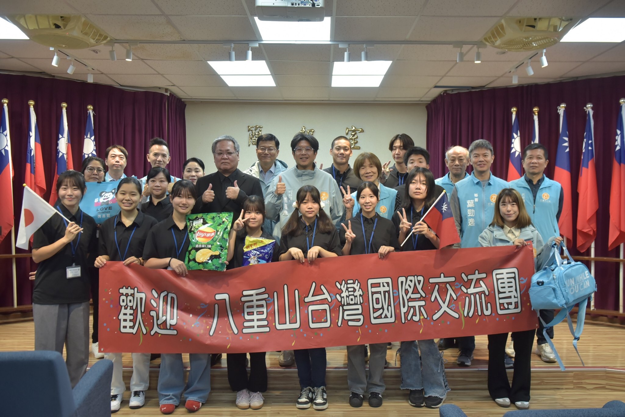 日本石垣市、竹富町、与那國町組成的八重山廣域市町村圈事務組合,率領八重山三所高中十名高中生參訪台灣,並拜訪花蓮市公所,受到熱烈歡迎並由市長魏嘉彥親自接待,市長魏嘉彥表示,希望未來有更多的機會,持續加強兩地青年間的文化交流與友誼。