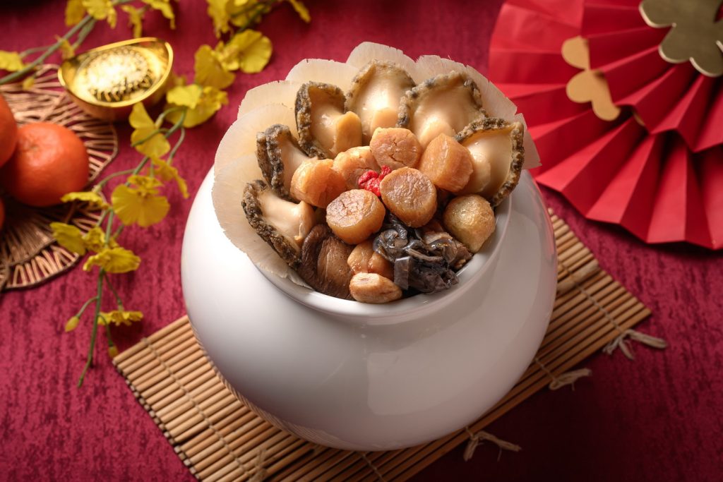 全新「六合同春團圓年菜外帶」菜色,包含「五福大拼盤」匯聚烏魚子、油雞、肝腸、豬腱與海蜇5款好料,「油爆海大蝦」外殼炸得金黃香酥,彈牙蝦肉令人吮指回味,「元蹄燴玉筍」圓潤外型象徵團圓與圓滿,圓蹄入口即化超誘人,「干翅鮑魚佛跳牆」精選珍貴食材魚翅、鮑魚搭配排骨、魚皮、蹄筋、北菇、甘栗等燉煮而成,「樹子蒸石斑」挑選新鮮龍虎斑蒸煮,魚鮮肉嫩。即日起至2026年2月6日開放預購。