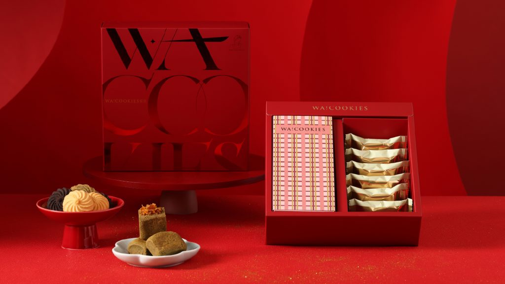 馬年限定【綻旺】禮盒結合 WA!COOKIES 人氣曲奇與今年的新品春翠茶鳳梨酥,以雙重組合象徵「綻放新意,旺盛希望」。外盒以馬年「馳騁、奔放」的形象為概念,將文字線條以綻放光芒為設計主軸,展現出【綻旺】的意象,並運用燙紅設計與質感紅做層次搭配,展現富貴典雅的新春氛圍,兼具品味與祝賀寓意,成為今年送禮的理想之選。