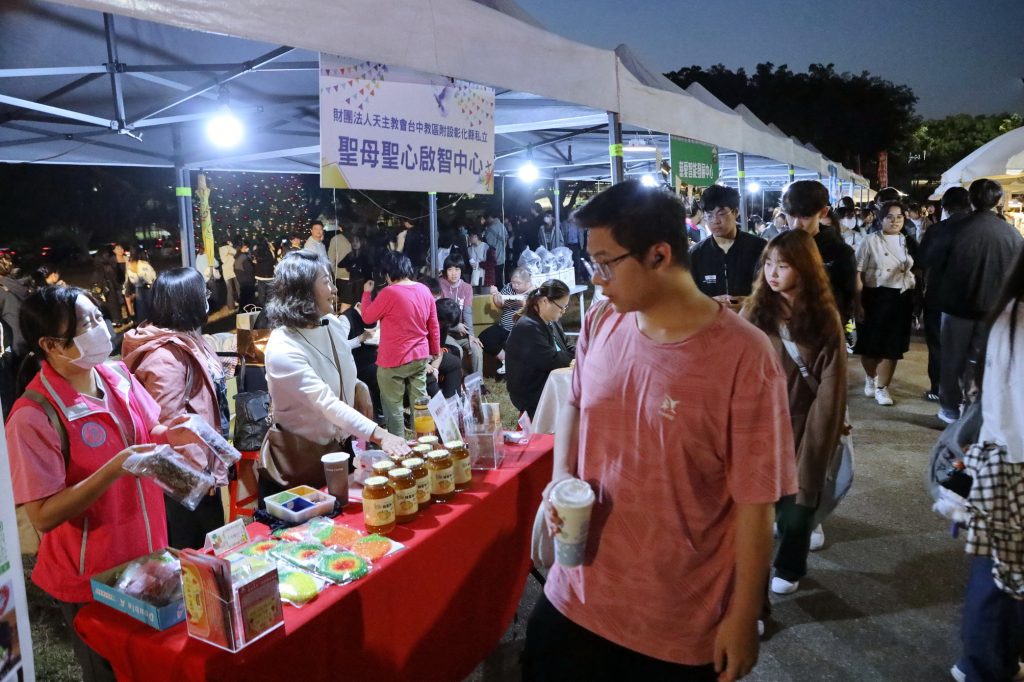 校牧楊安仁神父說明,天主教會將聖誕節前四週稱為「將臨期」,迎接耶穌降生與新年度的開始。全台46所天主教學校每年此時舉辦「天主教學校週」聯合活動,推動愛心募款。今年市集邀請台中教區8家身心障礙非營利組織設攤義賣,所得全數投入公益,實踐愛的精神。
