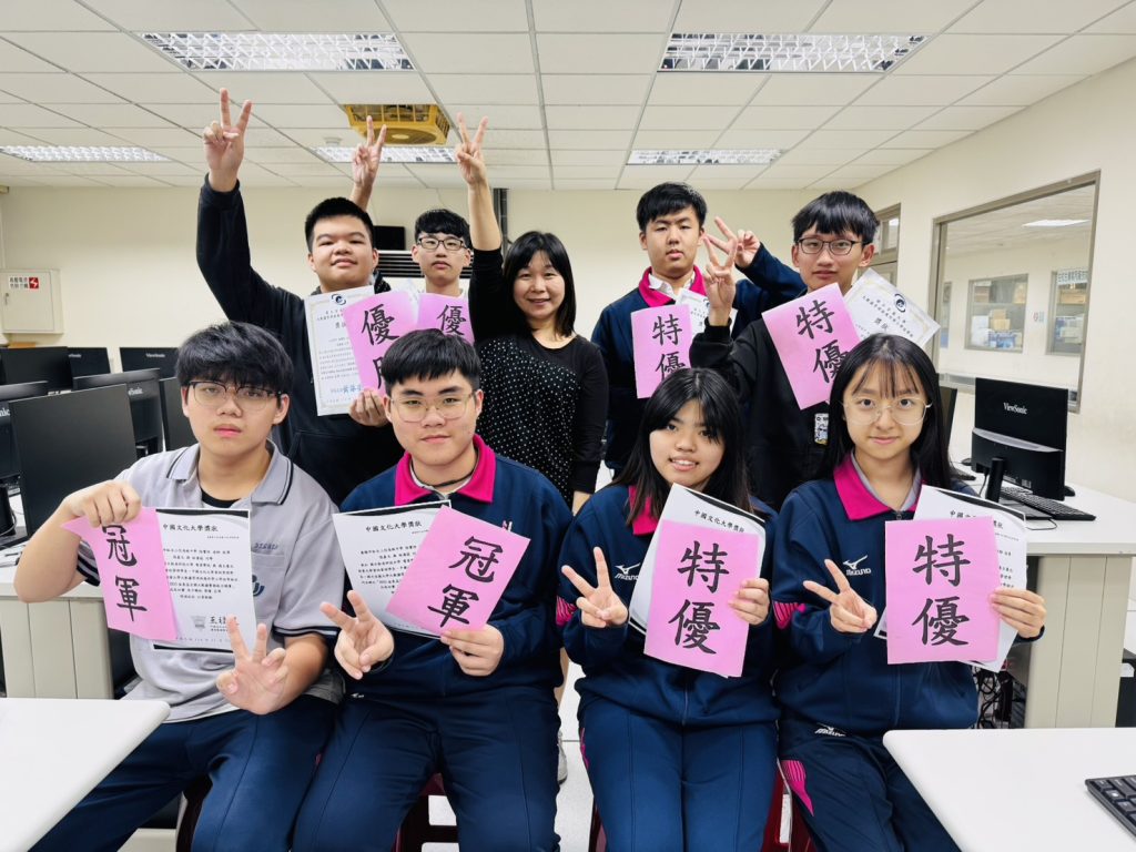 二信高中資料處理科在二0二五年全國金象盃大數據分析競賽決賽中大放異彩,今年共有四組隊伍晉級全國賽全數獲獎,其中由高二張嘉元、林濬莛組成的隊伍勇奪全國冠軍,高二蔡淳羽、陳君晏獲得特優第四名,高一曾英倫、陳品睿拿下特優第五名,高一林子淨、張憲朋則獲得優勝,充分展現專業能力與紮實訓練成果。