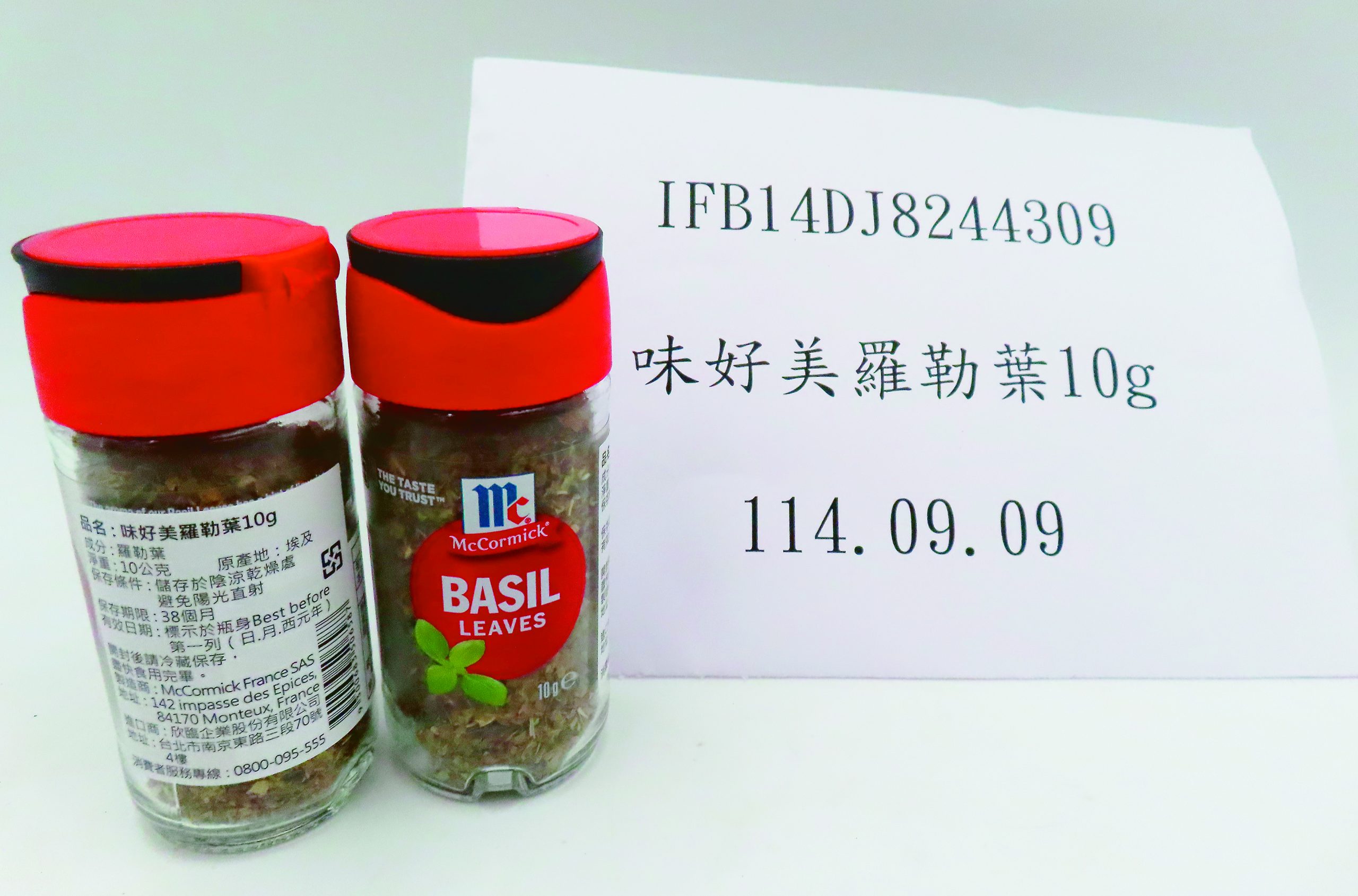 另外,由欣臨公司從埃及輸入的羅勒葉,製造廠是MCCORMICK FRANCE SAS,這批產品被檢出殘留農藥待克利0.07ppm,超出「農藥殘留容許量標準」法規容許值的0.05ppm,23.76公斤全數退運或銷毀。