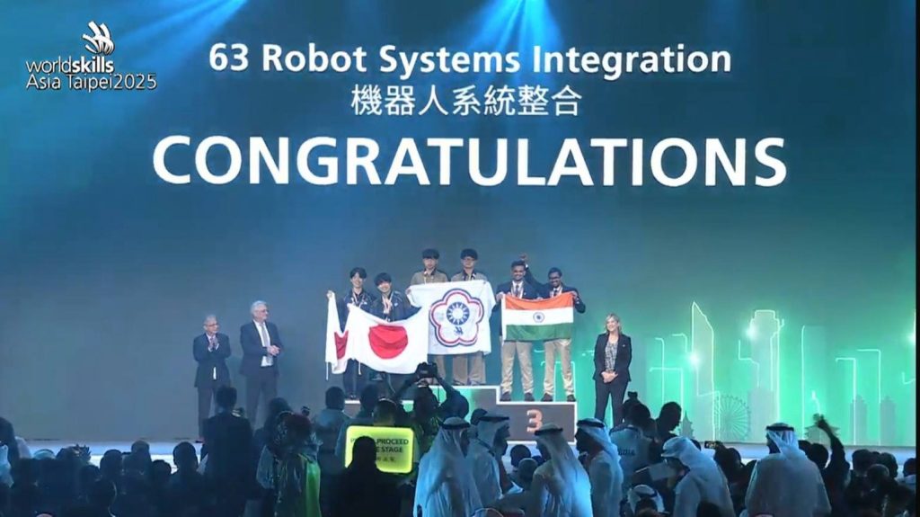 台中高工郭正賢同學及許葆賢同學榮獲「機器人系統整合」職類金牌;沙鹿高工由余佩蓁同學在「汽車噴漆」職類摘下銀牌;台中高工楊博宇同學榮獲「銲接」職類銅牌;明道高中陳品叡同學拿下「西餐烹飪」職種銅牌。