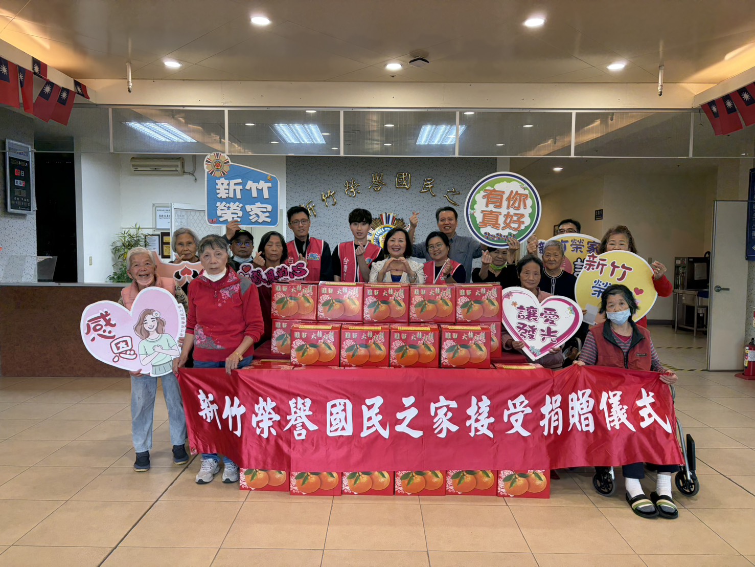 新竹某知名企業每年於竹縣關西鎮柑橘盛產之際,號召上百位志工走入果園採摘香甜多汁的柑橘,當日立即將六十箱新鮮柑橘親送至新竹榮家,予長輩分享「現採的好滋味」,由榮家白恩惠主任代表受贈。