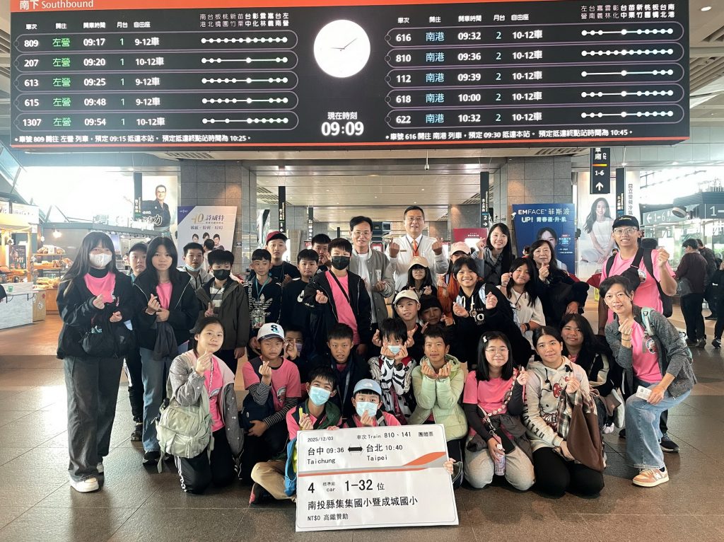 高鐵台中站溫馨傳遞愛心,三日上午幫助南投縣集集國小及成城國小兩校共三十二名六年級師生,搭乘高鐵前往台北,展開三天二夜圓夢畢業旅行。雖然兩校相距僅八公里,但卻是首次因為一起搭高鐵,促成了合辦校際交流的畢業旅行,學童們都感到既新鮮又有趣。出發前,高鐵台中站站長毛家鵬特別祝福孩子們能夠儘情享受這趟快樂學習的高鐵之旅,讓國小生活最後階段,留下美好回憶。