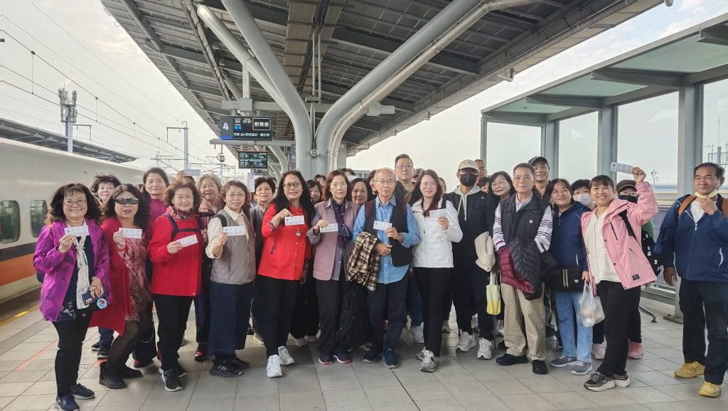 高鐵台南站深耕在地關懷地方長者,三日協助受丹娜絲颱風毀損家園的長者們以及「台南市慈聖文化志工發展協會」救災志工結伴出遊,期待透過舒適的高鐵旅程,鼓勵他們迎接災後新生活。