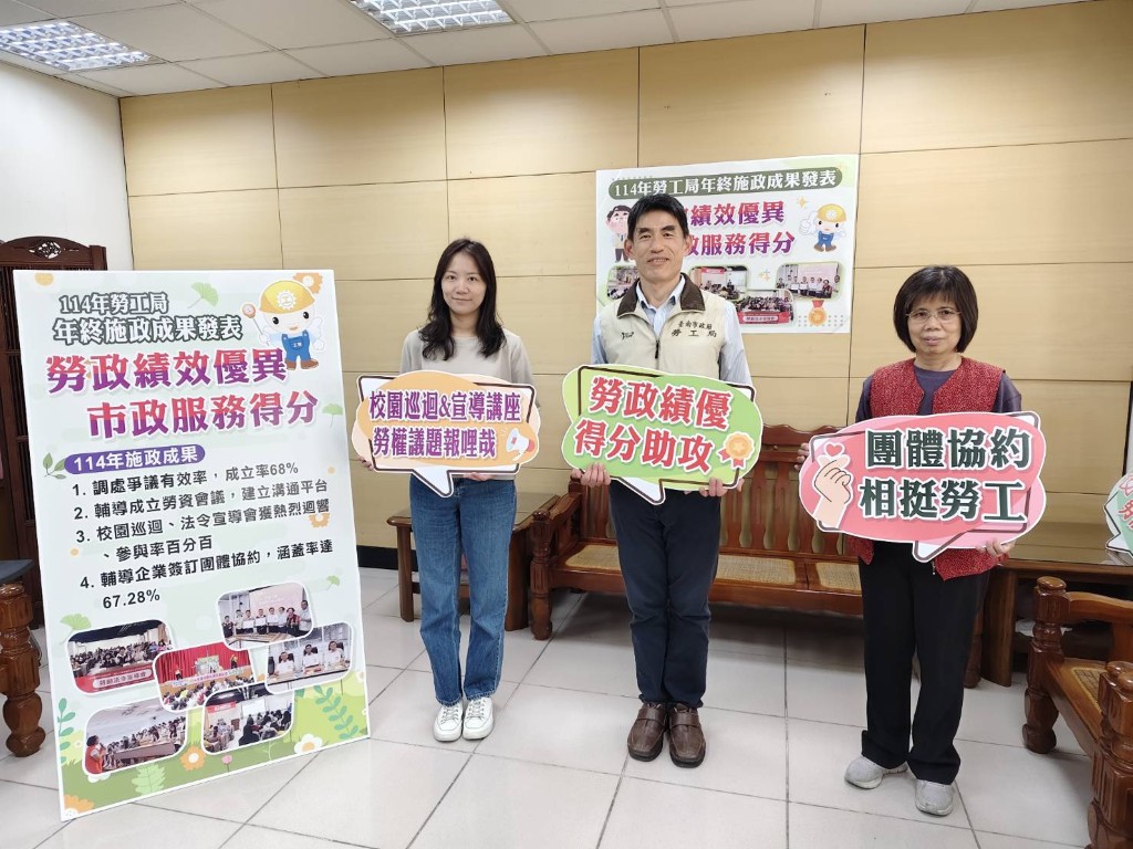勞工局四日召開勞政績效年終施政成果發表,勞工局長王鑫基說,包括輔導簽訂團體協約、勞資爭議處理、推動成立勞資會議、落實勞權教育宣導等,由源頭提升勞權意識,保障勞工權益。