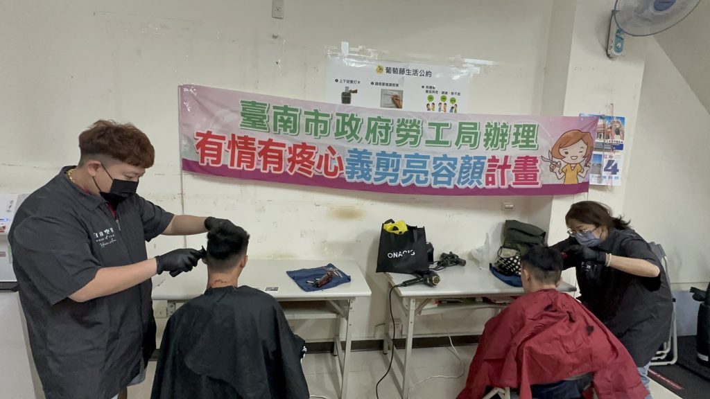 南市勞工局四日帶領大台南市理燙髮美容業職業工會志工,前往新營區伊甸基金會葡萄藤小作所進行義剪服務,透過專業與愛心,讓身心障礙院生以更自信的樣貌迎接冬季。
