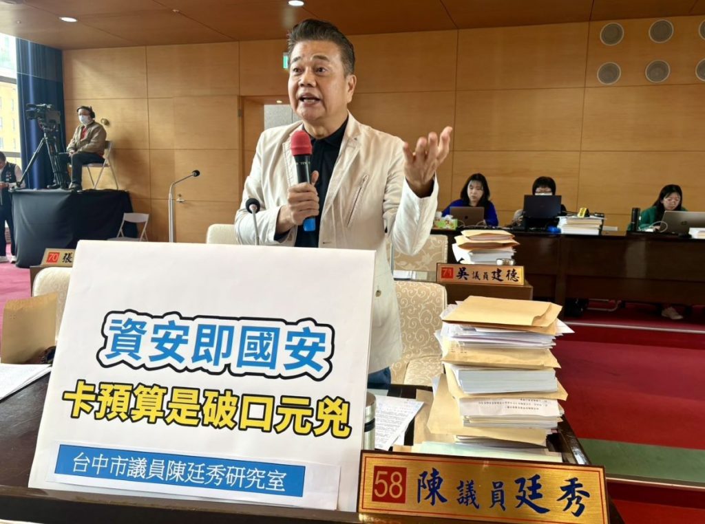 無黨籍台中市議員陳廷秀表示,賴清德總統11月19日才說過「資安即國安」,盧秀燕市長更在2023年接待AIT官員就提出「資安是國安的重要課題」這個概念,所以他認為數位局的預算皆屬例行且必要的設備汰換,其中包含電腦、文書系統與區公所防火牆等核心資安項目,遭卡關形同製造資安破口,因此他反對凍結這四筆預算,也不能刪除,以避免市府資訊安全、行政服務與市民資料因此受影響。