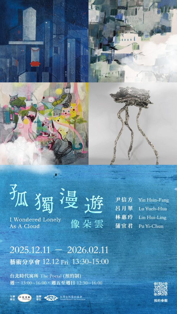 由統一集團旗下藝文品牌玲廊滿藝主辦之展覽《孤獨漫遊》,於台北時代寓所 The Portal 盛大舉辦。展覽名稱取自英國詩人華茲華斯的名詩〈I Wandered Lonely As a Cloud〉,象徵藝術家在孤獨中尋找心靈自由的旅程。四位女性藝術家——尹信方、呂月華、林惠玲、蒲宜君——以雕塑與繪畫交織出詩意的視覺語言,探索自我、自然與存在之間的流動關係。