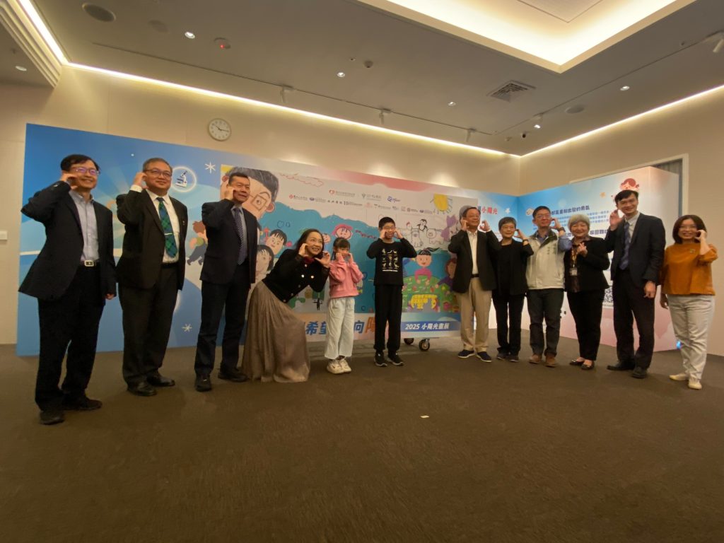 五日的開展,小陽光樂樂和陳冠廷都來到現場,他們歡喜畫作能在博物館展出,也感謝大家關懷著這一群小陽光。劉陽明看著小陽光們展顏,他表示,結合公益與藝術跨界的形式呈現,是陽光基金會十五年公益旅程中,首度將燒傷顏損兒的畫作帶入博物館,這象徵著「用畫筆迎向陽光、用勇氣重建希望」的溫暖力量。