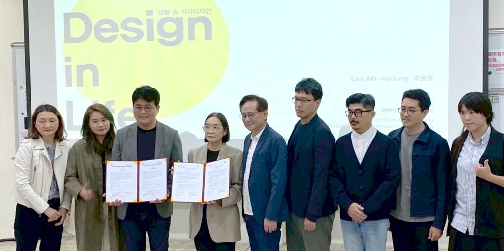 台南應用科大視傳系國際設計交流講座,邀請韓國仁德大學視傳系教授李民亨及韓國現代設計協會副理事長李佳樺,以韓國近年備受注目的「設計 × 生活文化」發展為核心,分享從視覺文化、潮流美學到國家軟實力的培養,並簽署MOU創造學生跨文化學習。