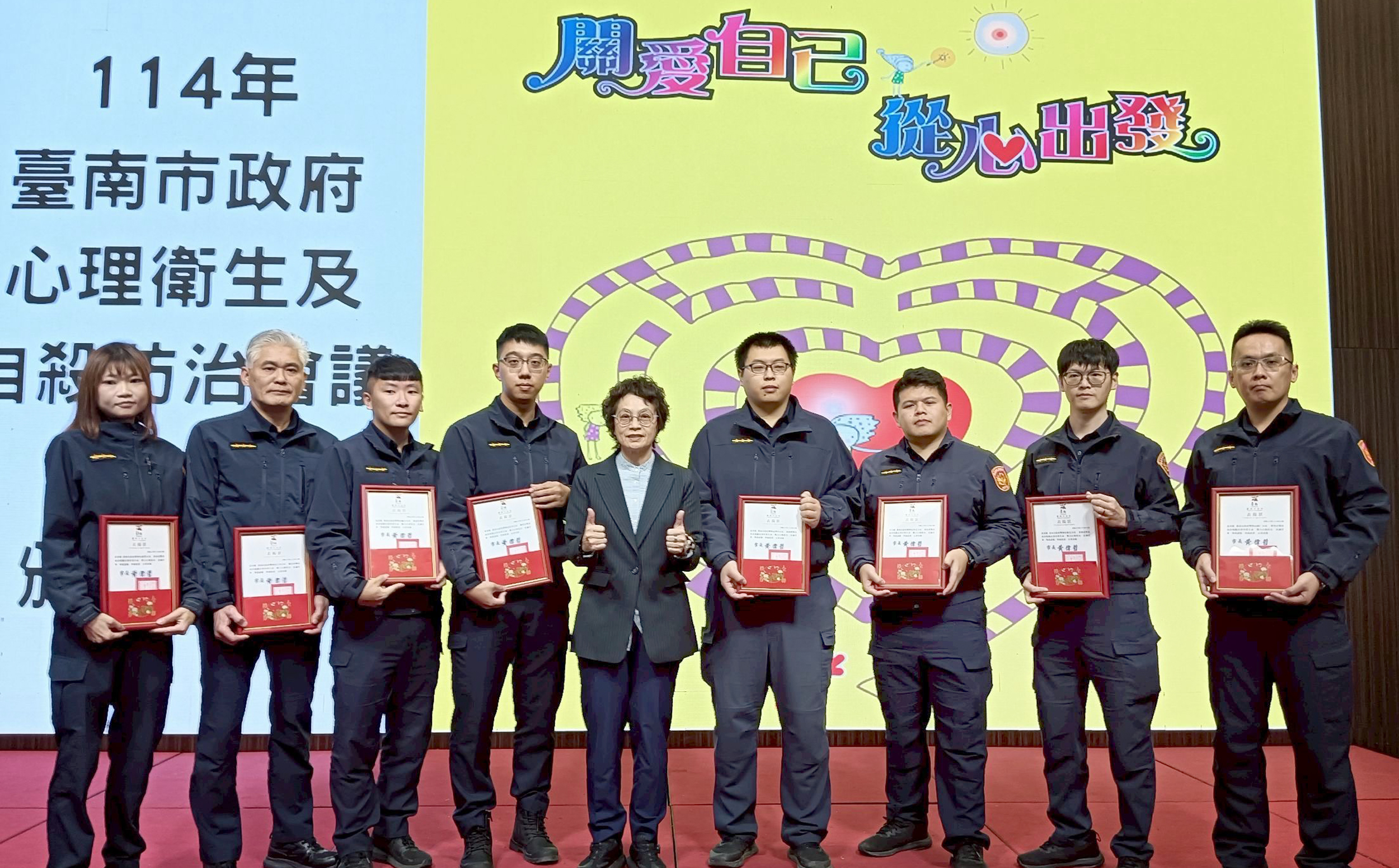 本次頒發成功規勸取消自殺行動者之績優警察、消防等二十一名有功人員。推動自殺防治及心理健康醫療機構等十二名有功人員,擔任自殺防治窗口,二十四小時通報不漏接,備受肯定。協助採證性侵害案件成果優異等五名醫師,因其縝密採證,掌握關鍵性證據,協助警政署偵破重大性侵害案件,讓司法得以伸張,成效卓越。心理健康促進活動之推展有功單位,大台南登山協會自一0五年起,連續十年協助推動台南市心理健康月「好心情」親子健走活動,深獲民眾喜愛肯定。