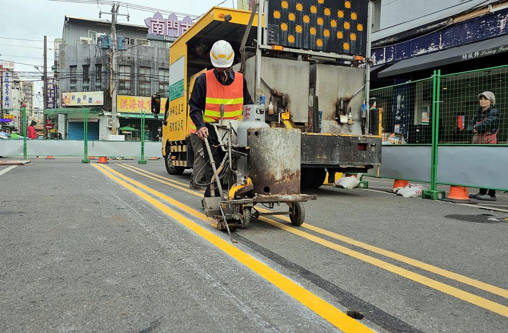 市府啟動文化街道路標線調整,優化南門市場周邊交通與環境。(經發局提供)