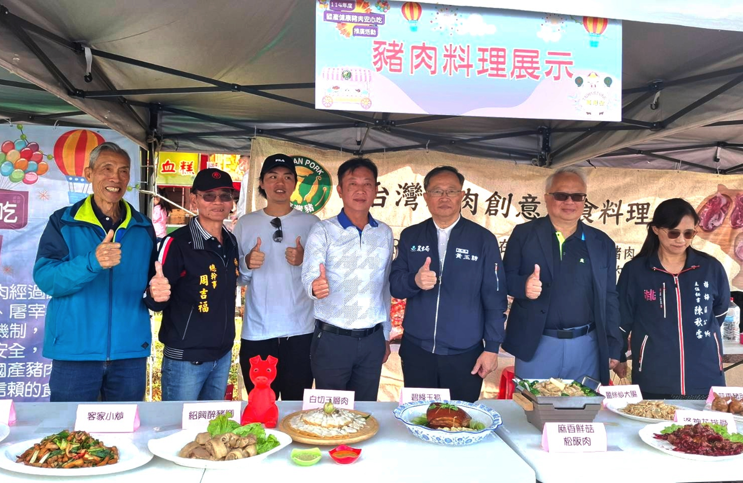 桃園市養豬協會理事長林承德表示,六日特別邀集產業代表、專家學者與在地畜牧業者,一起宣示守護食品安全、推廣「桃園黑豬」,並支持地方優質畜產品牌。現場安排國產豬肉,另外也免費提供滷肉飯、烤香腸各三百份,讓民眾「看得到、吃得到」,親身感受桃園黑豬口感Q彈、脂肪細緻的絕佳品質與風味。現場亦販售採用桃園黑豬製成的鹹豬肉、貢丸及香腸,此外,參加有獎徵答有機會將優質地產「楊農米」帶回家。