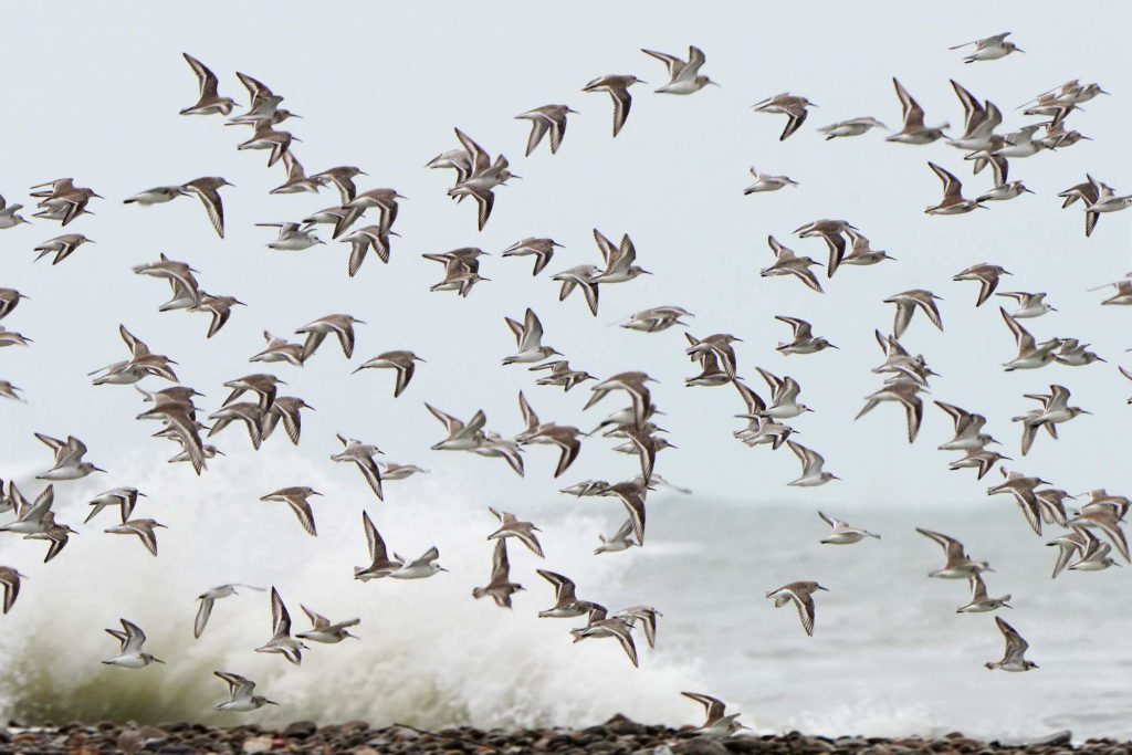 新竹市政府六日在金城湖舉辦「二0二五新竹市水鳥季」活動,香山濕地潮間帶侯鳥停棲覓食頻繁。(記者曾芳蘭翻攝)