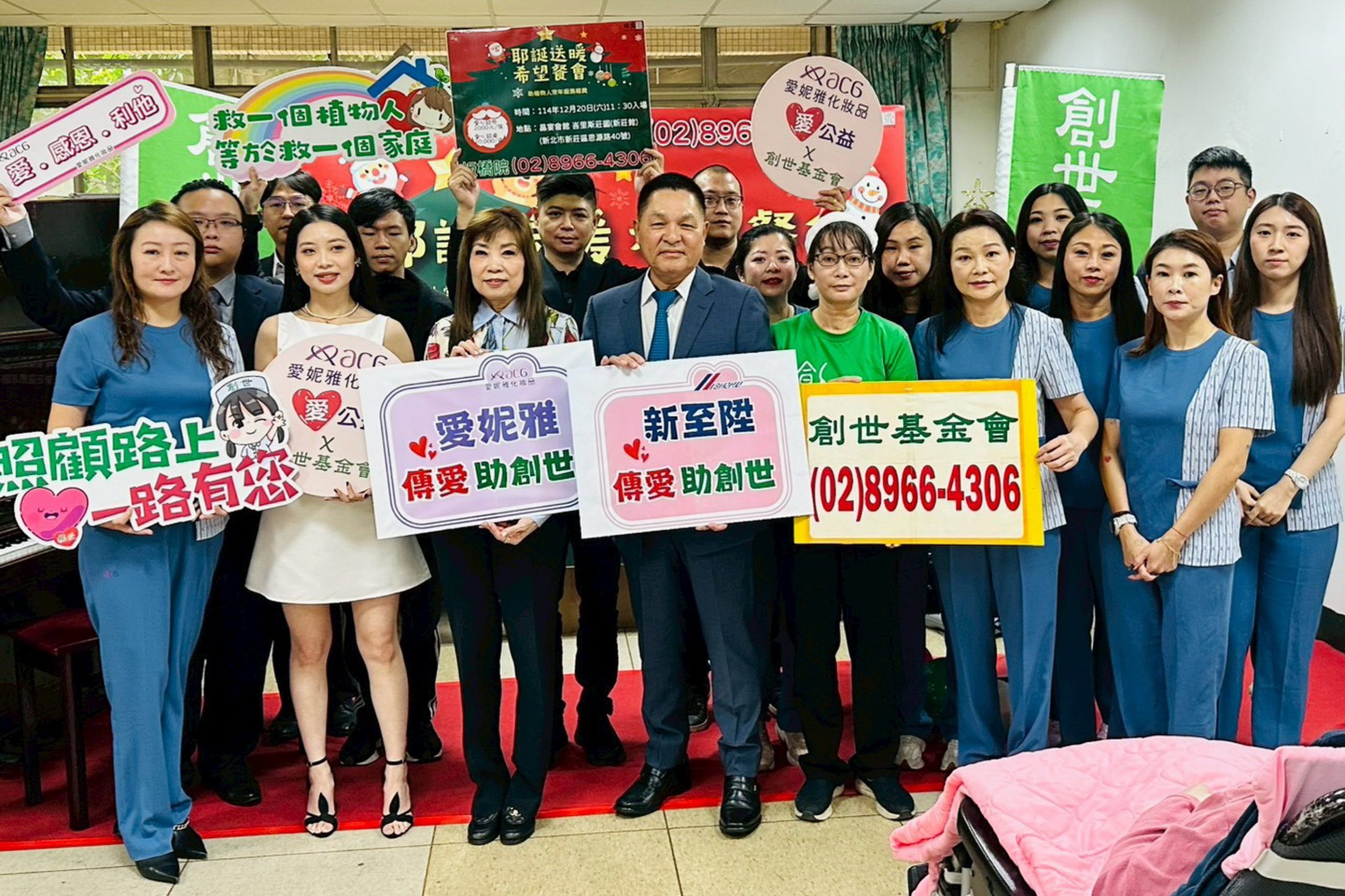 創世板橋院院長李培菁表示,板橋院目前安養五十一名植物人,每月照護成本高達二至三百萬元,奶粉、尿布等耗材需求龐大;非常感謝愛妮雅化妝品集團與新至陞科技伸出援手舉辦「耶誕送暖愛心餐會」,期待社會大眾響應,另創世也同步於除夕年前推動 「第卅六屆寒士吃飽30送禮到家」活動,邀請民眾於歲末年終為植物人家庭送上祝福,陪伴植物人家庭迎向新的一年。愛心專線:(0二)八九六六四三0六。