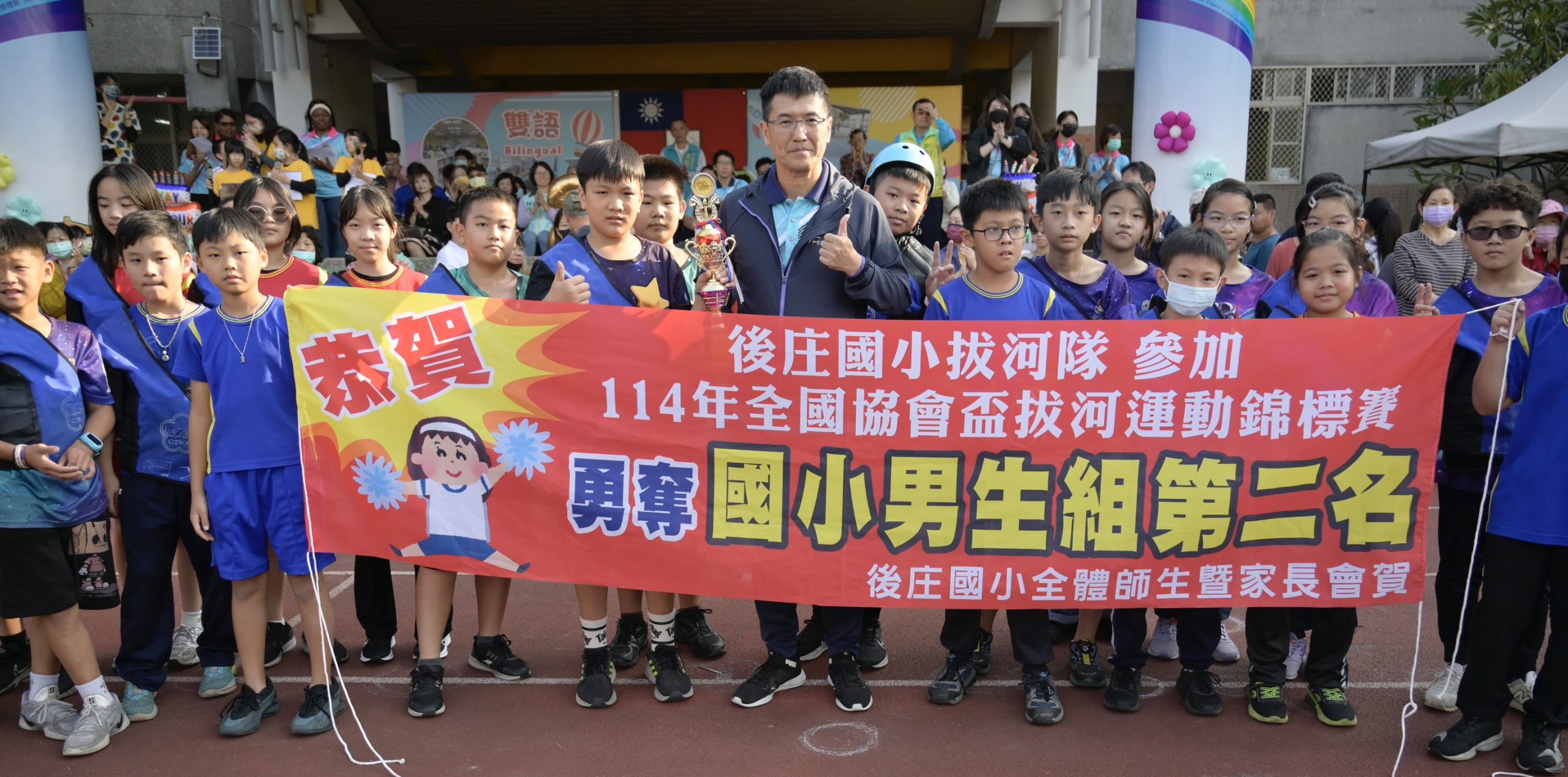 高雄市後庄國小拔河運動項目締造佳績,拔河校隊於今年全國拔河錦標賽勇奪亞軍、高雄市也榮獲男生組第一名、混合組第三名,展現學生團隊合作與堅毅不放棄的精神,學校特別於二十七屆校慶頒獎表揚。