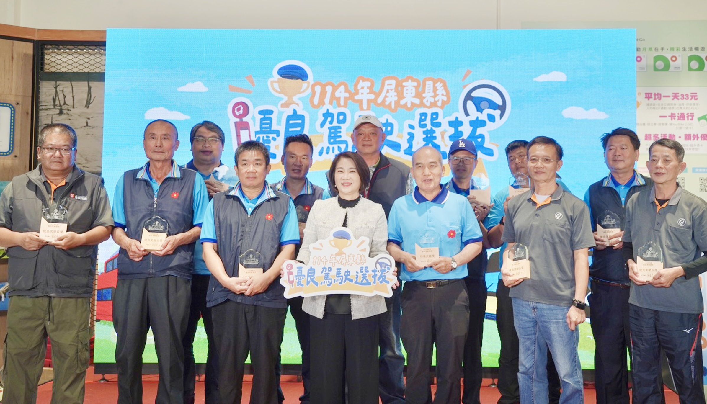 屏東縣長周春米七日表揚十二名優良駕駛,除肯定客運駕駛在公共運輸服務、行車紀律與乘車品質上的優異表現,也期待鄉親尊重並感謝每位辛勤付出的駕駛長。