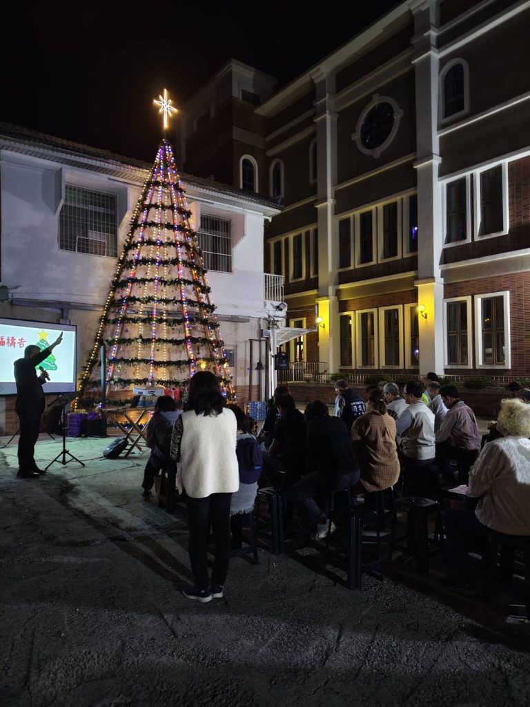 在教會雷鼓隊的鼓聲中,左鎮教會的耶誕樹亮起來了,今年以「聖誕之愛,光照左鎮,共享平安」為主題,擴大舉辦系列慶祝活動,還特別邀請南台科技大學視覺傳達設計系師生合作,在教會廣場精心布置七座融合在地意象與聖經寓意的聖誕燈飾小屋,邀請社區居民走入教會,欣賞美麗的裝置藝術,共同感受節慶溫暖。