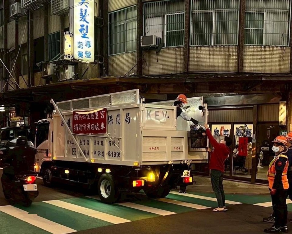 慈皇宮號資收車於捐贈後當(6)日,帶著神明的祝福與庇佑,助力清潔隊維護城市環境。(新北市環保局提供)