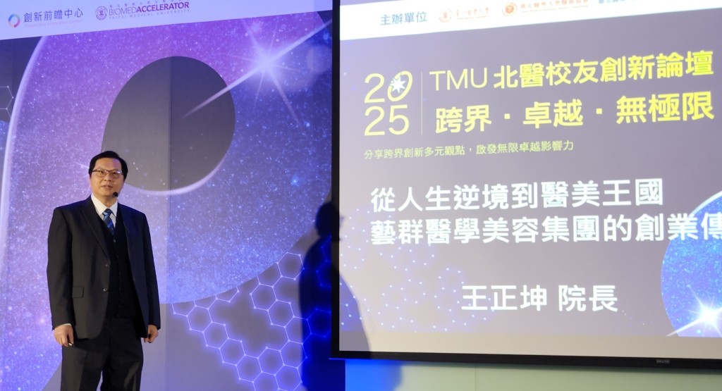 台北醫學大學於十二月七日舉行「TMU 二0二五北醫校友創新論壇」,邀請校友、藝群醫學美容集團董事長王正坤醫師,以「從人生逆境到醫美王國」為題分享個人經歷,吸引校友與醫療產業人士到場聆聽。