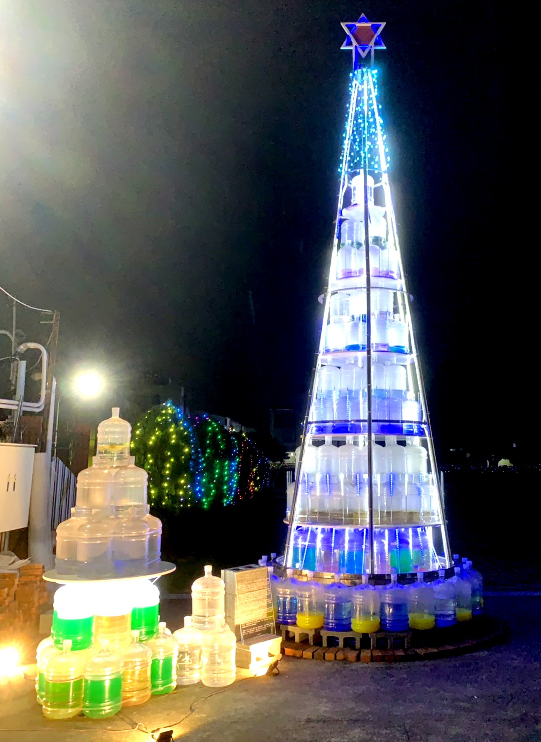 崑山科大空間設計系與歸仁基督長老教會合作,推出全新耶誕裝置作品「諾亞(方舟)之樹」,以「生命保存與地球循環」為核心,以飲用水瓶裝入有顏色液體組構成通透垂直方舟意象,象徵生命的延續、自然再生與人類對永續的承擔。將於十三日正式點燈。