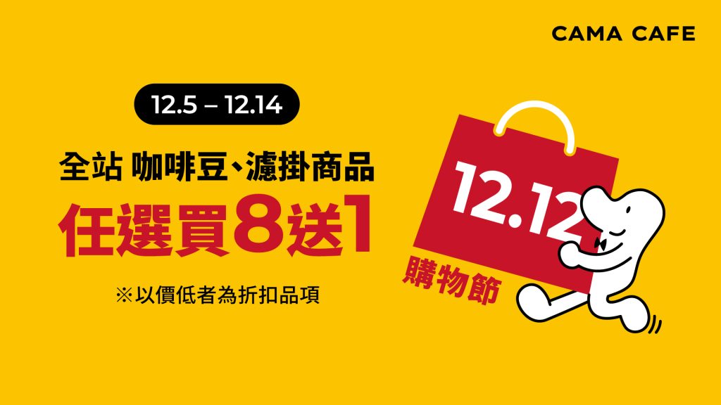 1.即日起至12月14日,全館咖啡豆與濾掛咖啡商品買8送1,以價低者為折扣品項。