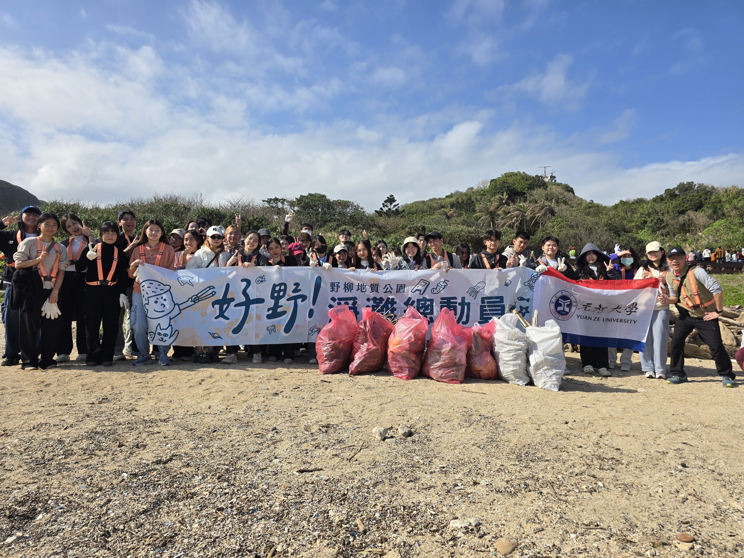 四十多名元智大學僑生,日前在學校軍訓室規劃下,前往野柳地質公園淨灘,同學並向遊客宣導愛地球的環保觀念;一行人淨灘後到基隆廟口夜市品嚐美味的小吃及體驗獨特的廟口夜市文化。