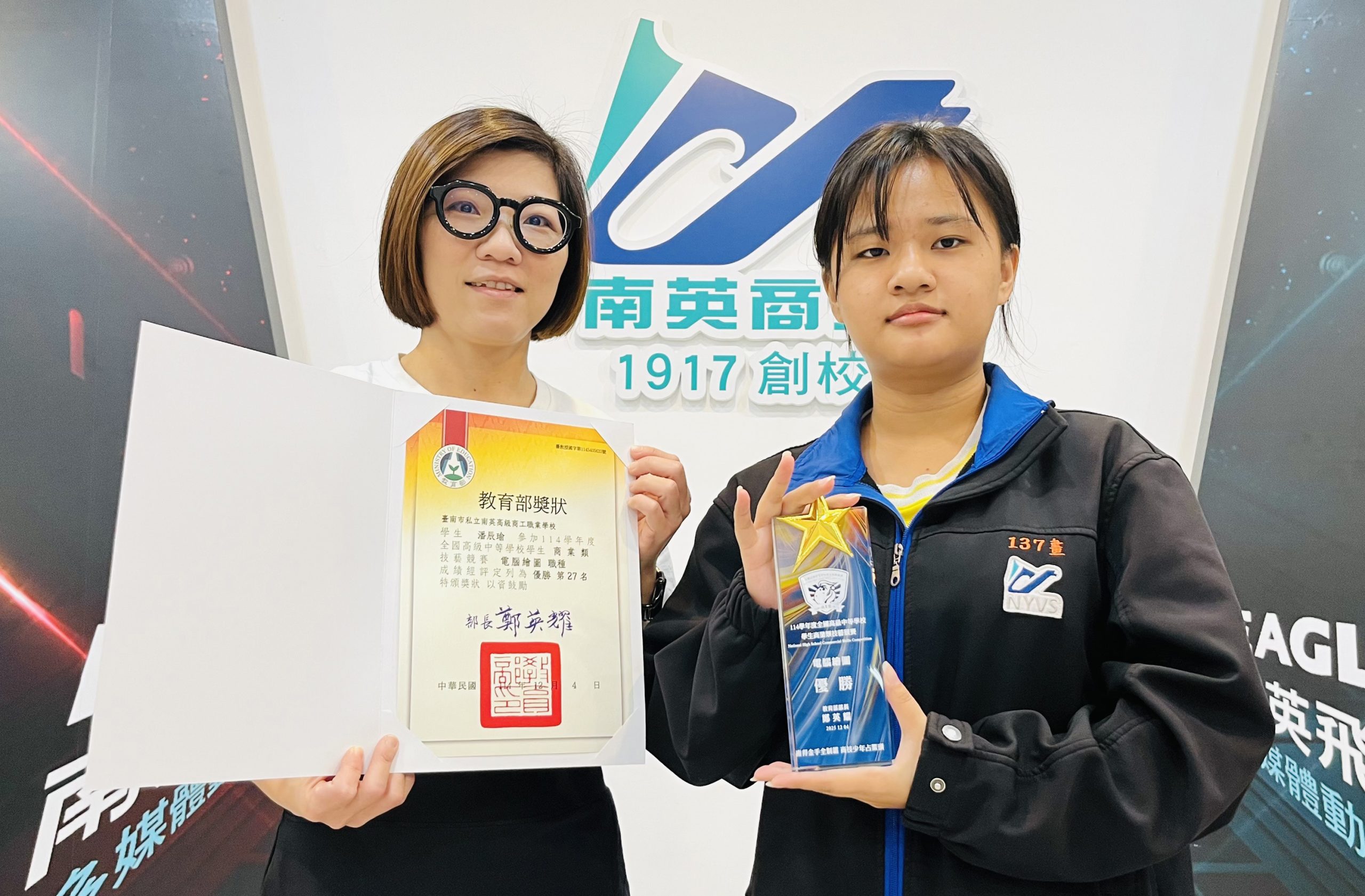 「全國高級中等學校學生技藝競賽」為技職學子年度最重要的競技舞台之一。南英商工多媒體動畫科潘辰瑜憑著扎實訓練與出色創意,在競爭激烈的「電腦繪圖」中脫穎而出,榮獲「優勝」殊榮。