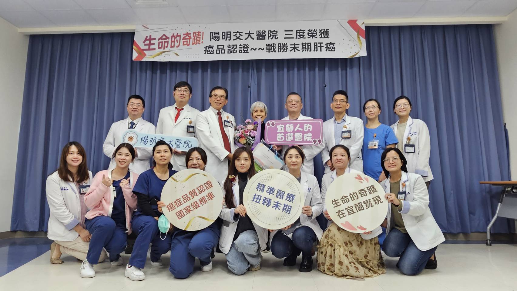 國立陽明交通大學附設宜蘭醫院腫瘤醫學中心8日宣布一起罕見且成功的末期肝癌治療案例,一名女性癌症患者在台北被醫師宣布四期癌未後,在陽交大醫療團隊祭出精準與自動化醫療進行化療與電療後,奇跡讓癌細胞消失,院方8日送上鮮花給宋女祝福她恢復健康。