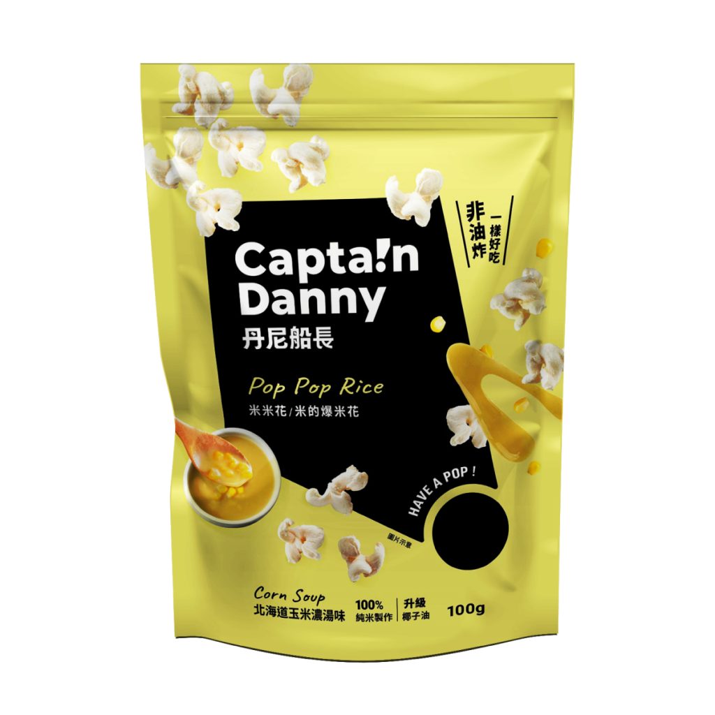 台灣品牌「丹尼船長 Captain Danny」的米米花,口味則是呼聲超高、回購率第一名的 「北海道奶油玉米濃湯味」丨這款米米花以 台灣米製作、非油炸,口感輕脆不卡牙,奶油玉米濃湯味香氣濃郁。