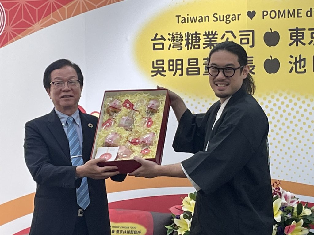 會中,池田社長展示其專利蘋果糖製作技法,並以台糖砂糖現場製作「台糖NO.1蘋果糖」,試吃後認為風味獨特。池田表示,糖的「純度」是關鍵,他曾在世界各地測試不同產地的糖,「台糖的砂糖是最適合作為基底的選擇」,特別是在裹糖時不需塗得過厚,也能成功包覆完整。他並透露,因應此次來訪,他特別研發「台南限定紫蘇梅口味蘋果糖」,使用台糖黑糖作為主要原料,希望呈現府城風味。