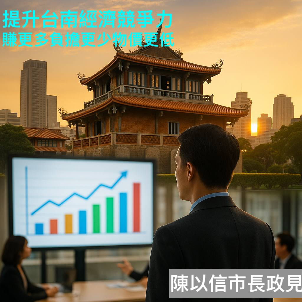 陳以信說,台南經濟要翻轉,第一是讓市民賺更多,市府需制定前瞻經濟戰略,鎖定具薪資成長潛力的產業,提出帶動企業投資、增加高品質就業並提升薪資水準的制度誘因。第二是讓市民負擔更少,將針對中低收入與家庭需求設計更精準的移轉性社福,並透過公托公幼補助、延長托育時間、打造家庭友善職場,提高女性勞動參與率,同時投資勞工AI職訓與技術升級,協助市民加薪、穩定就業。第三是壓低生活成本,將加速社會住宅與租金補貼,降低住房壓力,並擴充低廉便利的公共運輸以減少交通成本,推動節水節電等智慧設備補助,降低家戶能源支出。