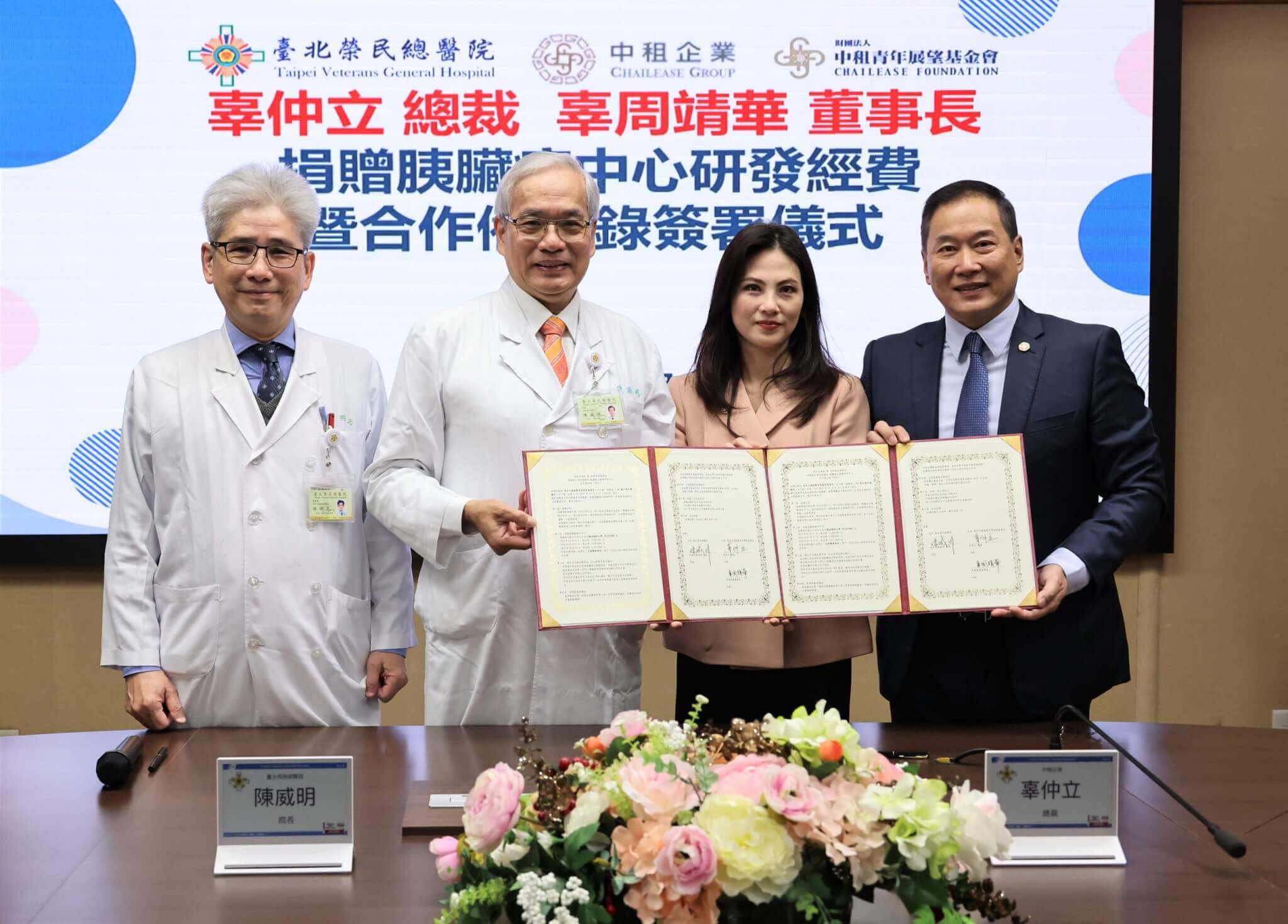 台北榮總9日舉行「辜仲立總裁暨辜周靖華董事長捐贈胰臟癌治療暨研究中心研發經費暨合作備忘錄簽署儀式」。中租企業總裁、美國紐約大學董事的辜仲立偕同夫人中租青年展望基金會董事長辜周靖華共同見證台美攜手推動胰臟癌研究的重要里程碑。