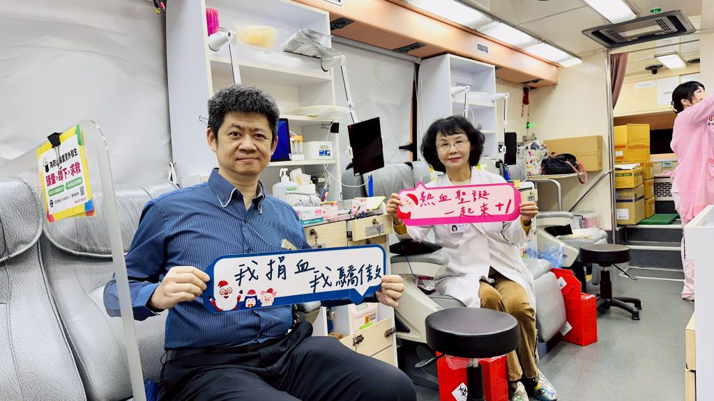 上午活動開始便湧入許多民眾挽袖捐血,郭綜合院長鄭雅敏、放射診斷科主任黃正強也與院內多科部主管、醫護人員挽袖捐血。鄭雅敏指出,歲末時節最有力量的祝福,莫過於能以一袋熱血延續生命,是極具意義的聖誕禮物。希望透過實際行動號召更多民眾加入捐血行列,讓需要的人在寒冬中也能獲得及時的幫助。