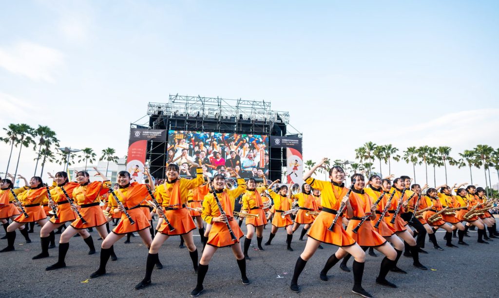 橘高校自二0二二年受邀來台,成為首個登上國慶舞台的國外表演團體,掀起一陣橘色旋風,之後多次來台,以精準完美的演出、陽光開朗的笑容,征服無數台灣觀眾,這次特別南下屏東與三所學校同台,校際交流牽起台日友情。