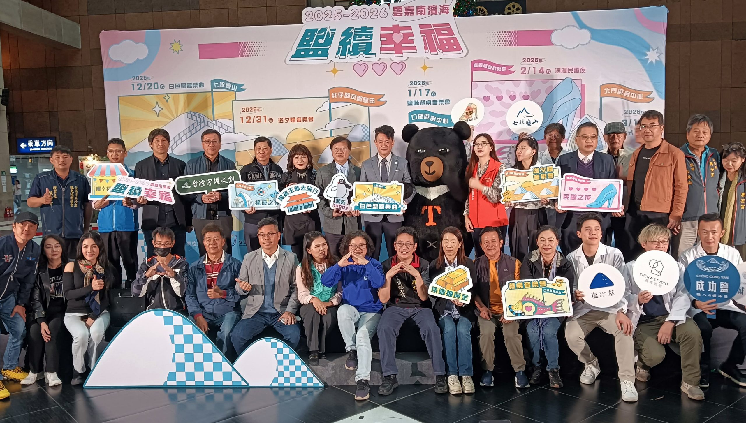觀光署表示,鹽續幸福活動月月有活動、場場都精彩,從今年的十二月二十日的七股鹽山鹽映聖誕樂曲,十二月三十一日井仔腳瓦盤鹽田夕陽送舊音樂會,明年元月十七日雲林口湖遊客中心鹽味音樂餐桌,二月十四嘉義高跟鞋教堂情人節限定浪漫民歌夜,以及三月十四北門遊客中心台式搖滾夜等。