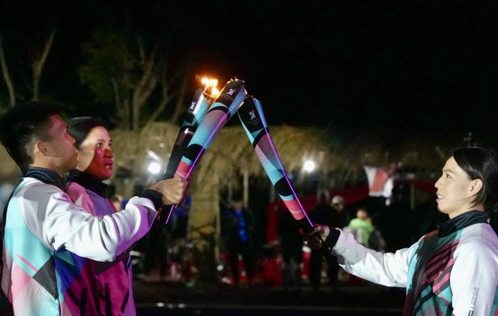 最受矚目的聖火儀式由原住民族頂尖選手、亞運銀牌拳擊選手賴主恩、奧運銅牌拳擊選手陳念琴擔任聖火跑手,最終由奧運金牌舉重選手郭婞淳引燃聖火。