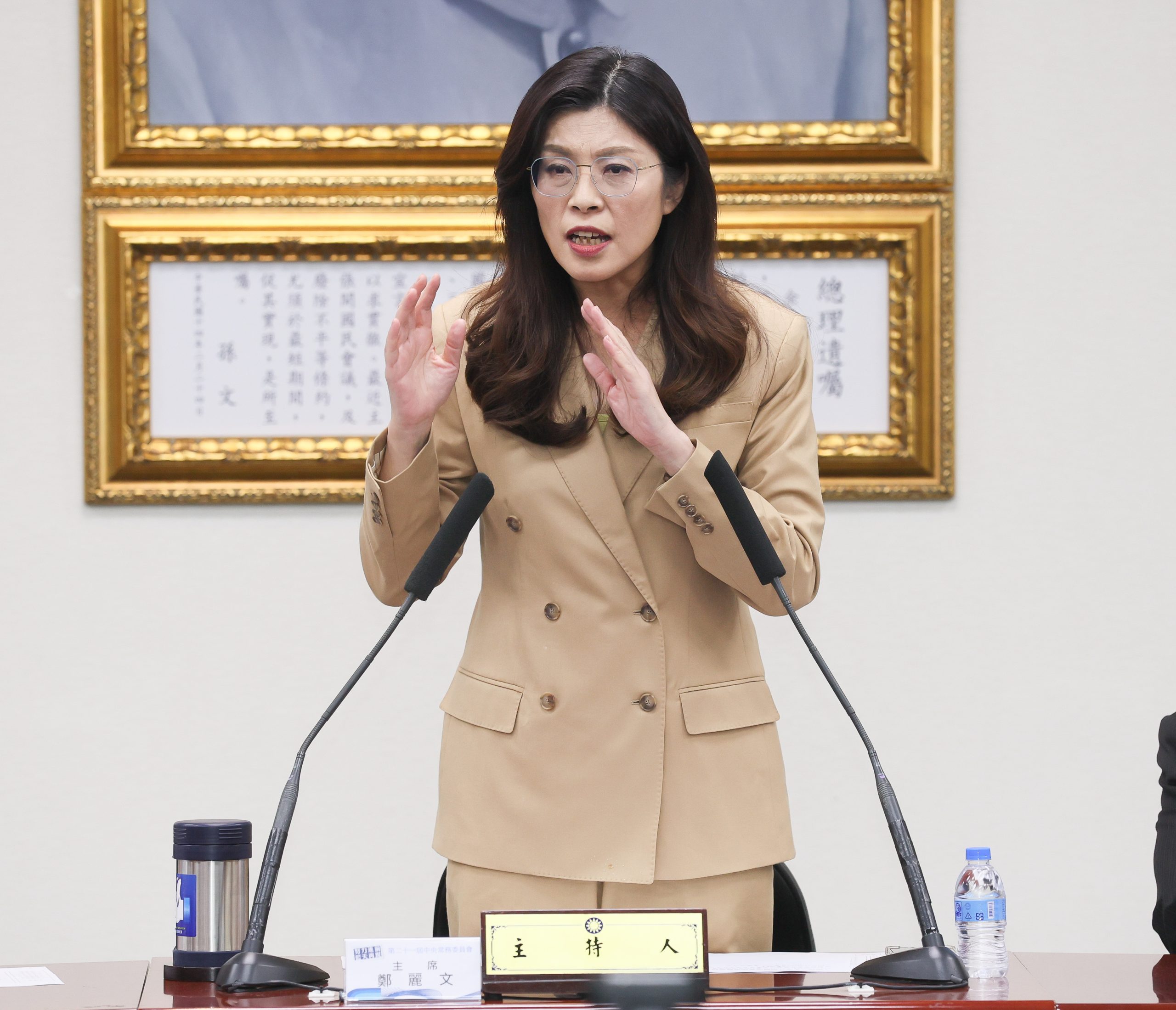 對於外界關注副主席赴對岸拜會時可能涉及軍購或其他政治交換,鄭麗文表示,民進黨尚未提出國防特別預算,相關揣測根本無從產生,綠營藉由虛構訊息挑撥破壞,只會造成社會誤解,也顯示其心虛與緊張。