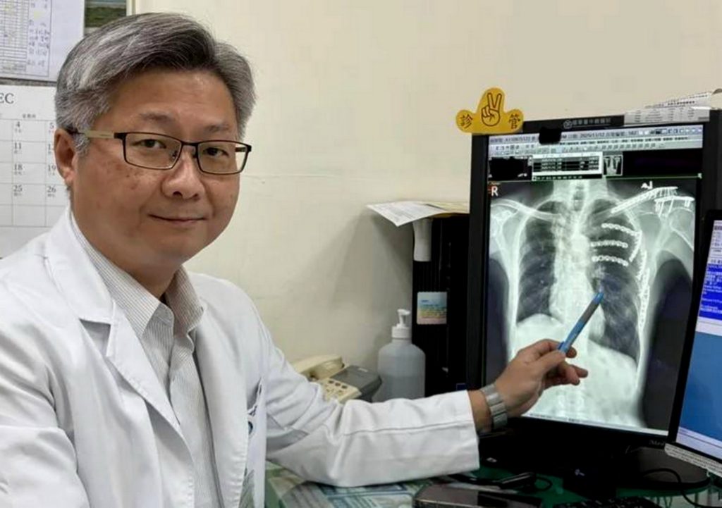 國軍台中總醫院胸腔外科主任謝志明指出,患者送醫時左側第3至7肋骨骨折合併血胸,呼吸極度困難,疼痛指數高達8分。傳統肋骨骨折多採不開刀保守治療,患者需忍受長達2至3個月的劇痛,若錯位嚴重甚至需半年才能癒合,且易引發肺炎、氣血胸等併發症。