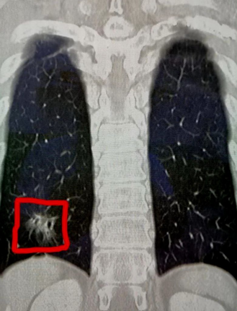 謝志明表示,醫療團隊在處理外傷的術前電腦斷層,發現患者右下肺葉有疑似早期肺癌的毛玻璃樣病灶。待肋骨傷勢穩定,3個月後回診追蹤時,檢查發現病灶依然存在。立即為他安排第2次「胸腔鏡微創手術」切除病灶,病理報告證實肺腺癌第1期。