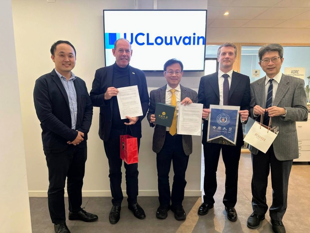 中原大學半導體產業學院積極布局國際合作,本(12)月9日與比利時頂尖學府法語魯汶大學(Université catholique de Louvain, UC Louvain)設立之「WINFAB」平台正式簽署《合作備忘錄》(MOU)。此次由中原大學副校長吳宗遠、半導體產業學院院長傅昭銘、學士學程主任郭泰辰代表訪問UC Louvain,雙方在半導體技術研發、產學合作及人才培育等面向建立具體架構,為未來長期合作奠定堅實基礎。