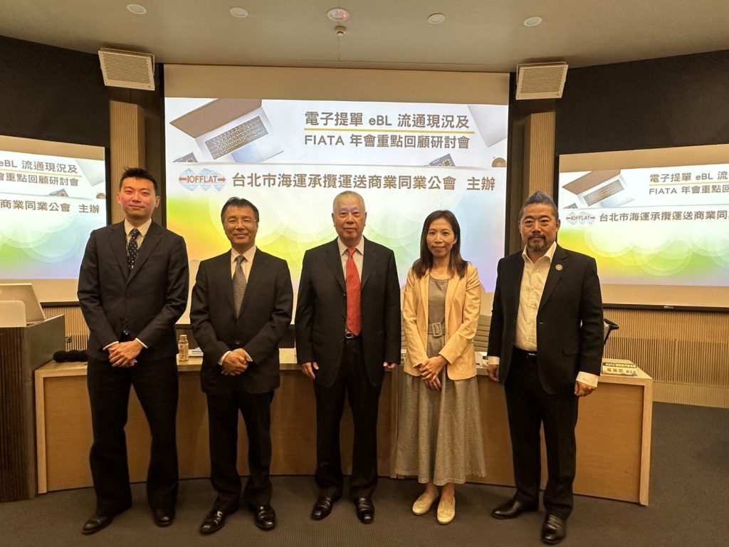 台北市海運承攬運送公會11日舉辦電子提單eBL流通現況及FIATA年會重點回顧研討會,由理事長陳木枝及法規組召集人葉建明,副召集人吳俊澤主持,會中包括由葉建明召集人針對FIATA eBL使用說明,CMA CGM加值服務蕭志成資深專員對無紙化提單的優勢與傳輸鏈作說明,FIATA副會長楊瑞如則闡述 FIATA 國際貨代聯合會重點回顧與展望,IQAX系統平台產品部陳希雯總監說明,對eBL數位轉型的應用實例說明IQAX 在運輸單證的解決方案 。