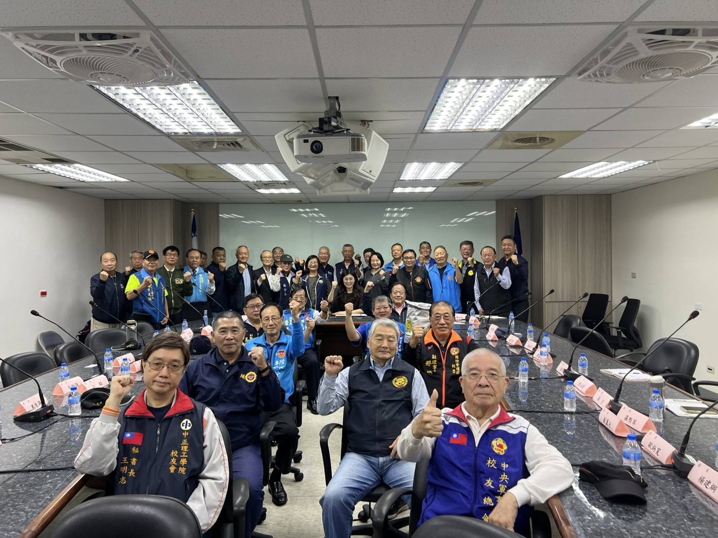中華民國空軍航空技術學院校友總會總會長廖盛芳(挑大師),受國民黨黨部副主席季麟連之邀,和全國各軍事院校理事長,擔任國民黨黃復興黨部重造籌備委員,今(11)日在國民黨中央黨部受到黨主席鄭麗文的熱烈歡迎與勉勵,鄭麗文坦言,剛接任黨主席,才發覺國民黨空空空空,四大皆空,但絕不氣餒,每天充滿大小挑戰,內心都保持非常開心,不講華麗的言詞,只談務實,說到做到,期待黃復興重造寄予厚望,鄭麗文並和與會者親切的合照。