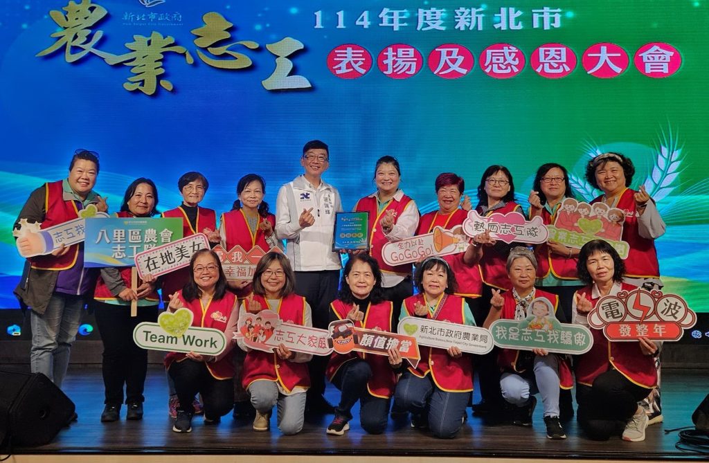 新北市府農業局昨日表揚一一四年農業志工隊,感謝志工們以熱情與專業支持新北農業政策推動。 (記者吳瀛洲攝)