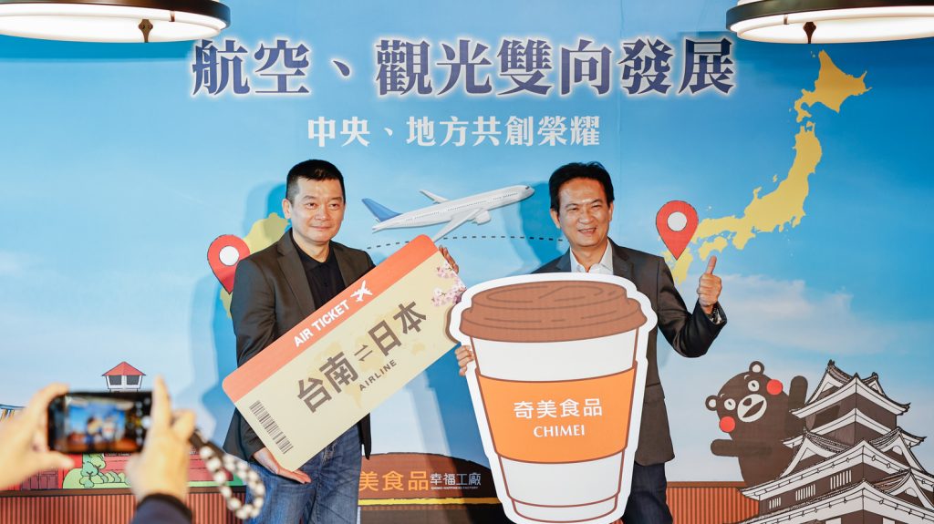 立法委員林俊憲十一日在奇美食品幸福工廠咖啡廳舉辦「推廣台南機場航線觀光」記者會,宣布台南直飛日本熊本成功,中央及地方多位首長、航空業者、市議員共同出席喊讚,展現中央、地方與民間企業攜手推動空港觀光的決心,就在台南機場對面的奇美食品幸福工廠也宣布加碼推出「憑機票兌換咖啡」活動,盼吸引更多旅客使用台南機場、促進航空與觀光產業雙向發展。