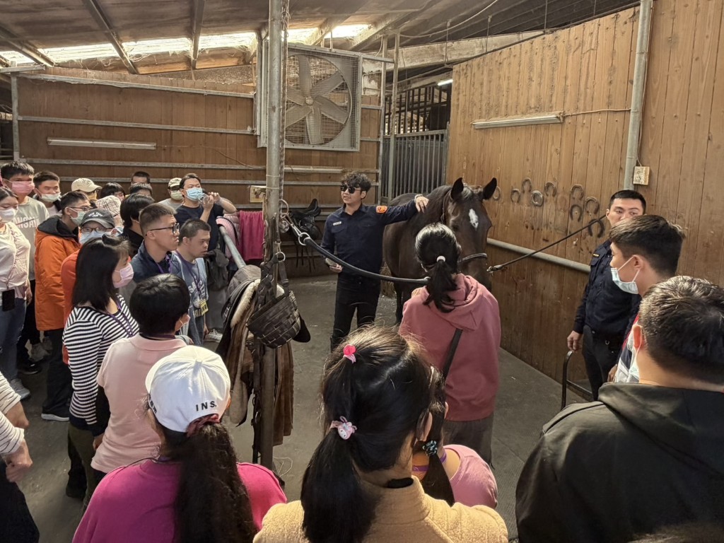 騎警隊向學員們介紹馬匹。(新北市警局提供)